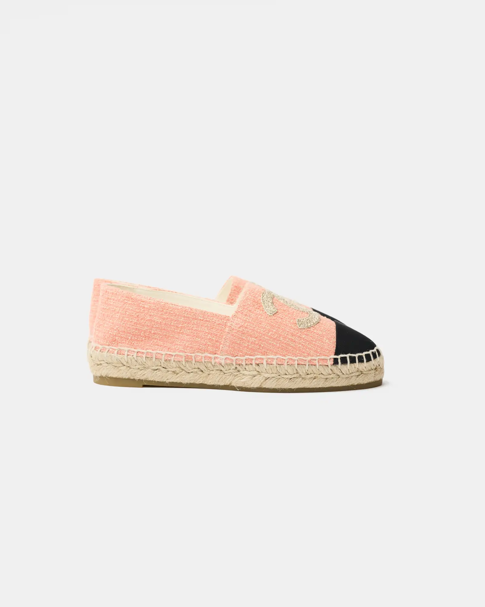 Chanel Light Orange Cotton Tweed Fabric and Grosgrain Espadrilles