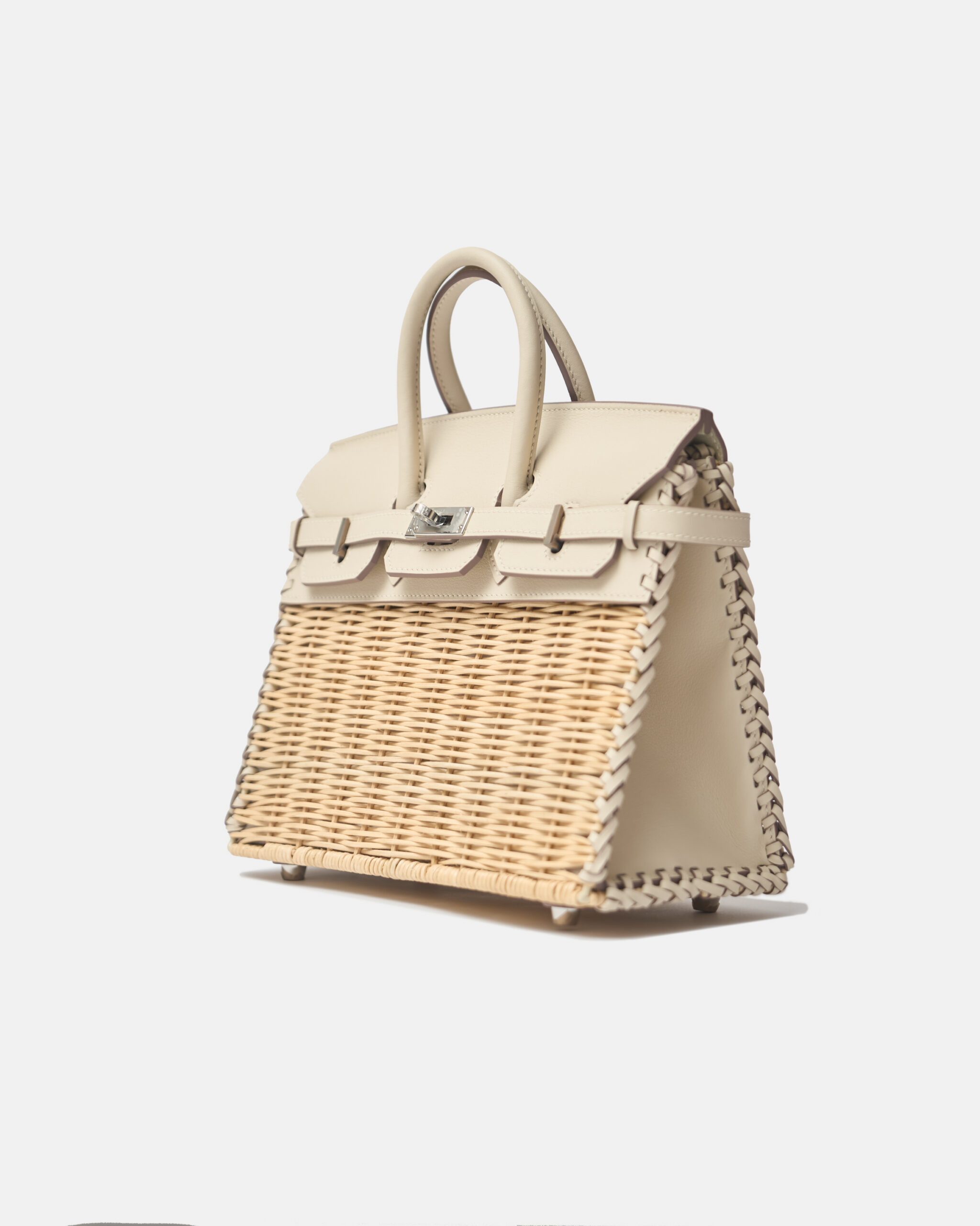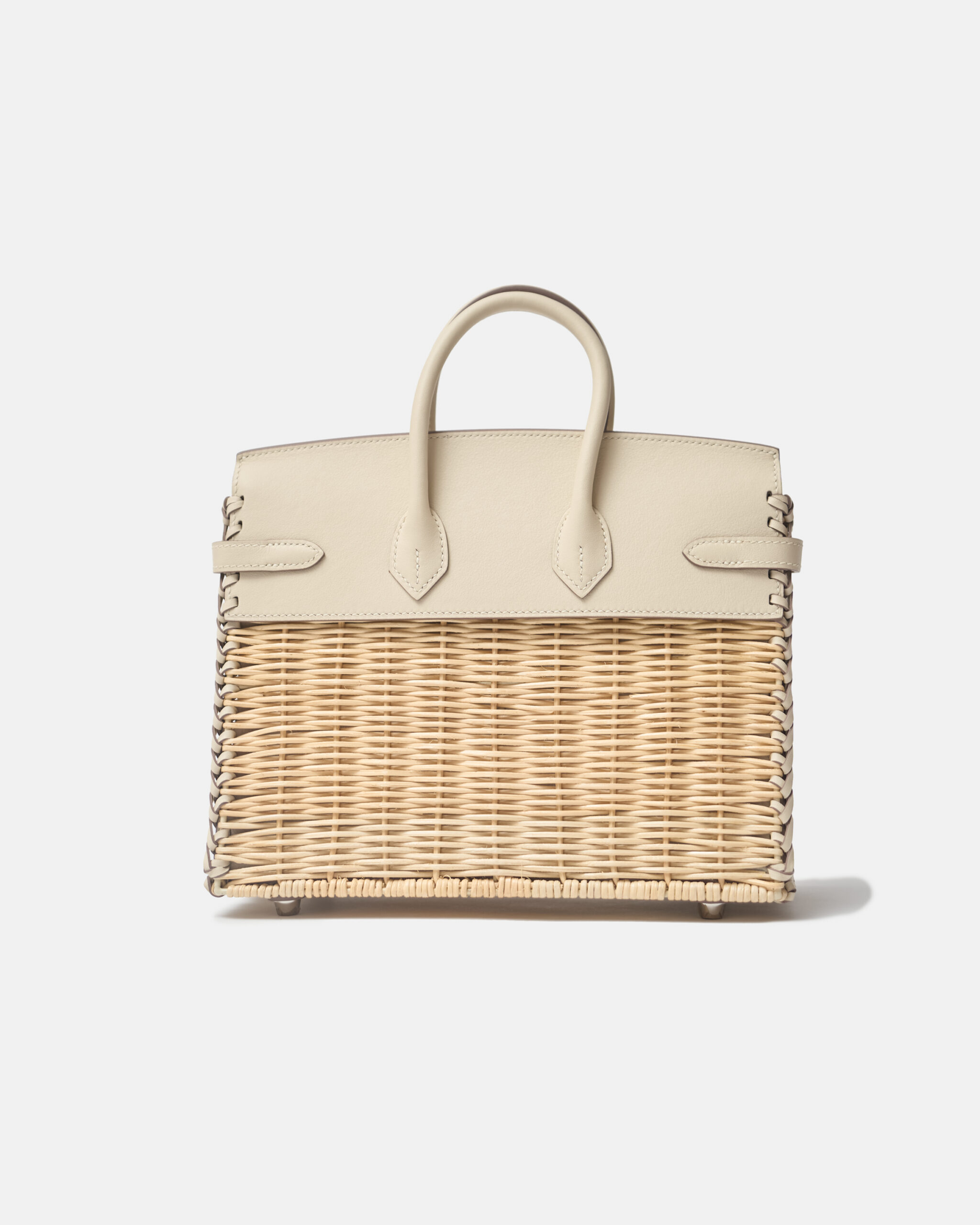 The Hermès Birkin Sellier Picnic 25 is an exceptionally rare and highly collectible limited-edition creation, celebrated for its artisanal craftsmanship and distinctive materials. This brand new example is crafted in handwoven wicker paired with Nata Swift leather, creating a refined contrast between natural texture and smooth leather elegance. The structured Sellier construction enhances the bag’s architectural silhouette, while sleek palladium hardware (PHW) provides a modern, polished finish.