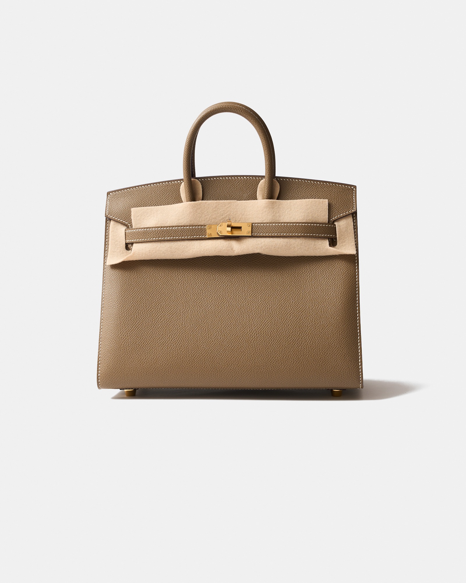 The Hermès Birkin Sellier 25 is a highly refined expression of the iconic Birkin, distinguished by its sharp lines and elegant Sellier construction. This brand new example is crafted in Etoupe Epsom leather, Hermès’ signature taupe-grey shade prized for its versatility and timeless appeal. The structured, embossed Epsom leather ensures a crisp silhouette and excellent shape retention, while gold-plated hardware (GHW) adds a warm, classic finish.