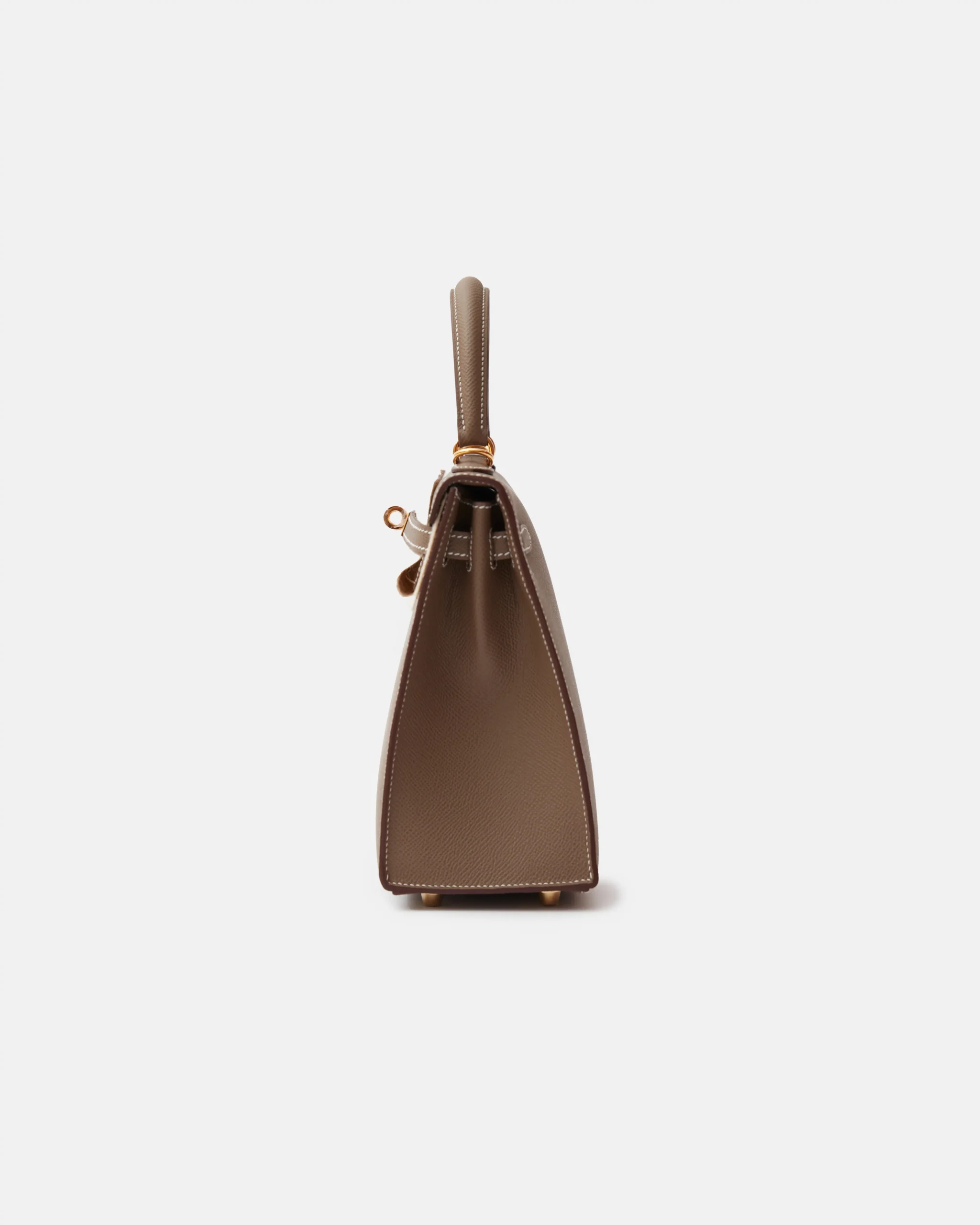 The Hermès Kelly 25 is a timeless icon, celebrated for its elegant proportions and impeccable craftsmanship. This brand new example is crafted in Etoupe Epsom leather, Hermès’ signature taupe-grey shade prized for its versatility and enduring appeal. The structured, embossed Epsom leather offers excellent shape retention and durability, while gold-plated hardware (GHW) adds a warm, classic Hermès finish.