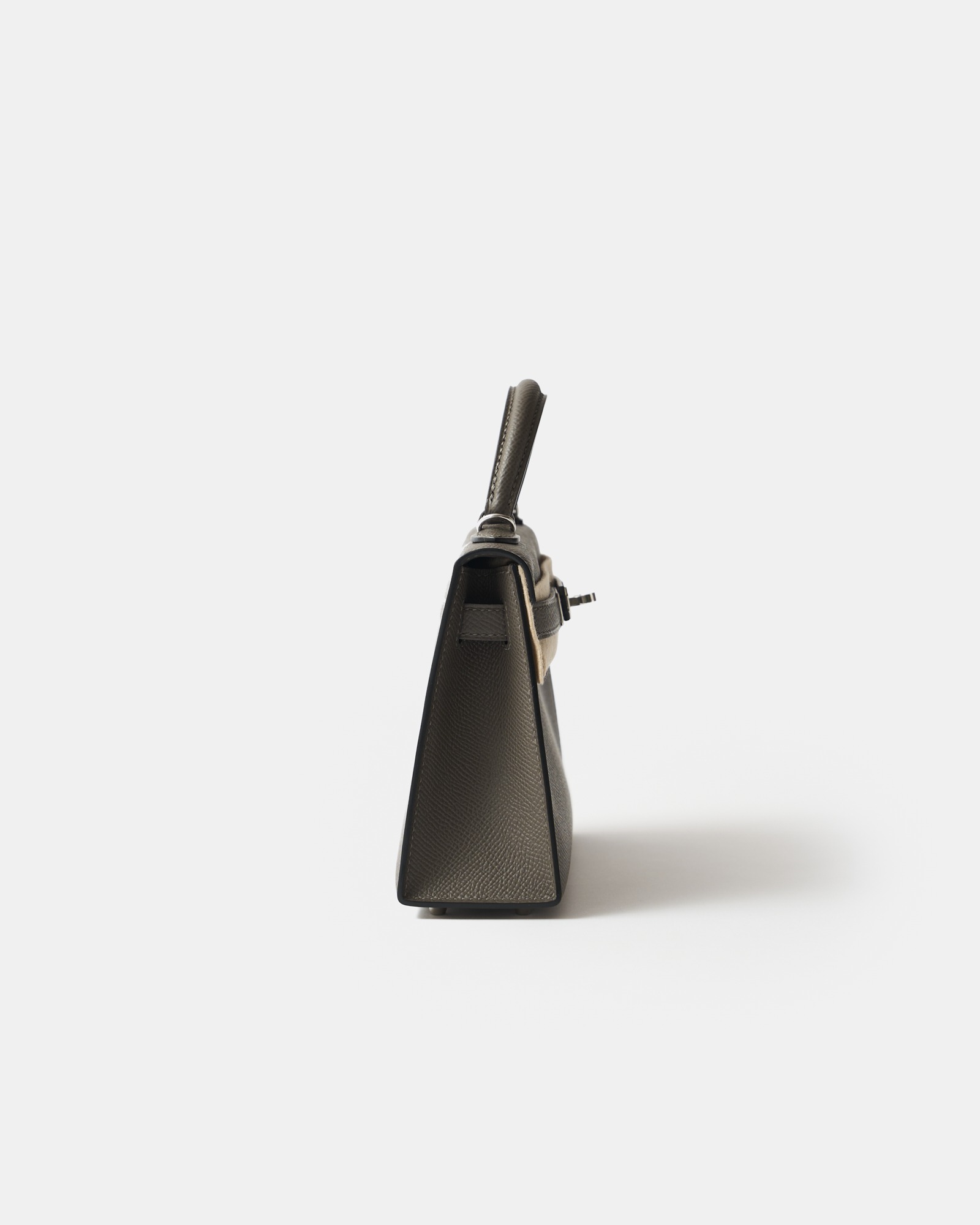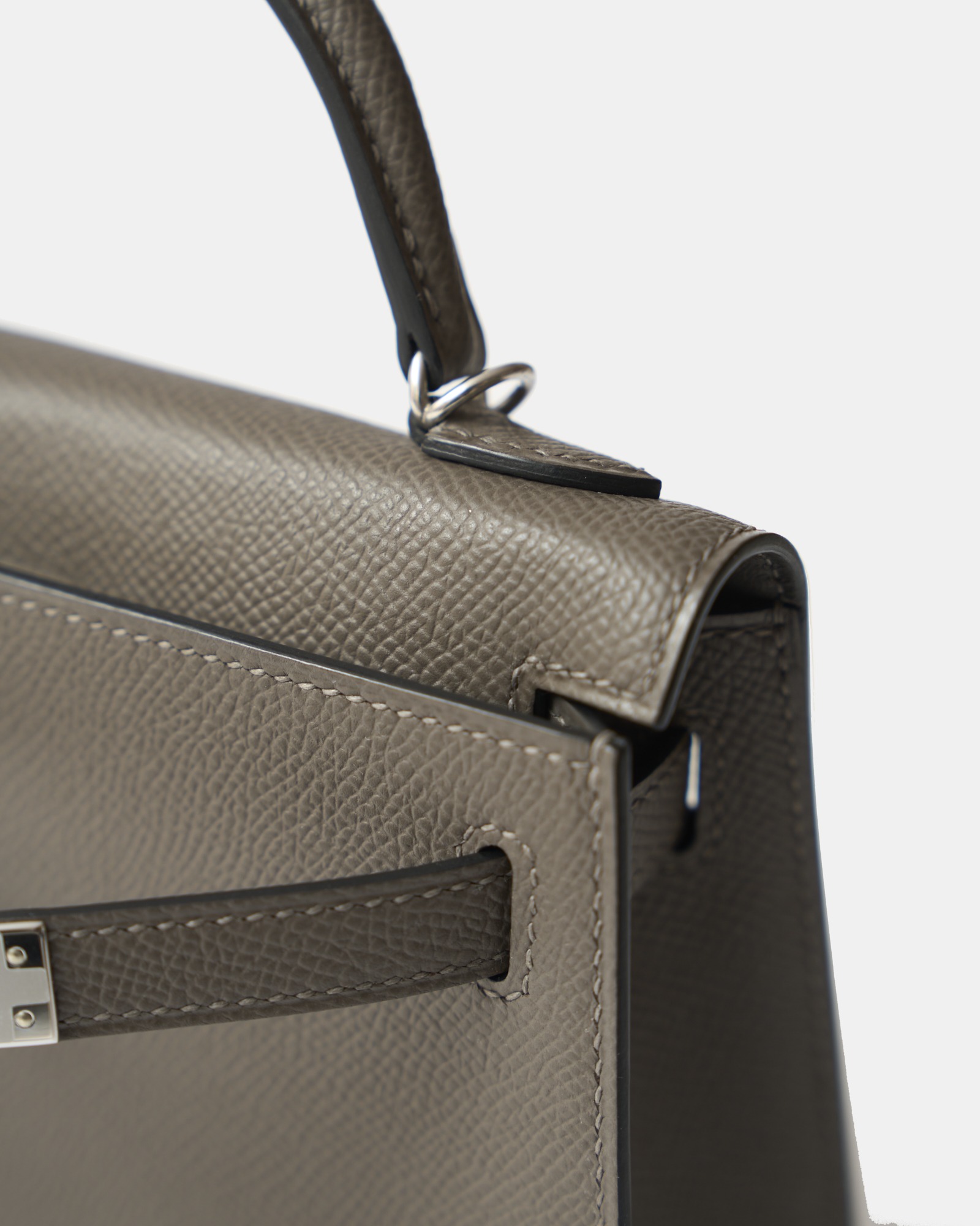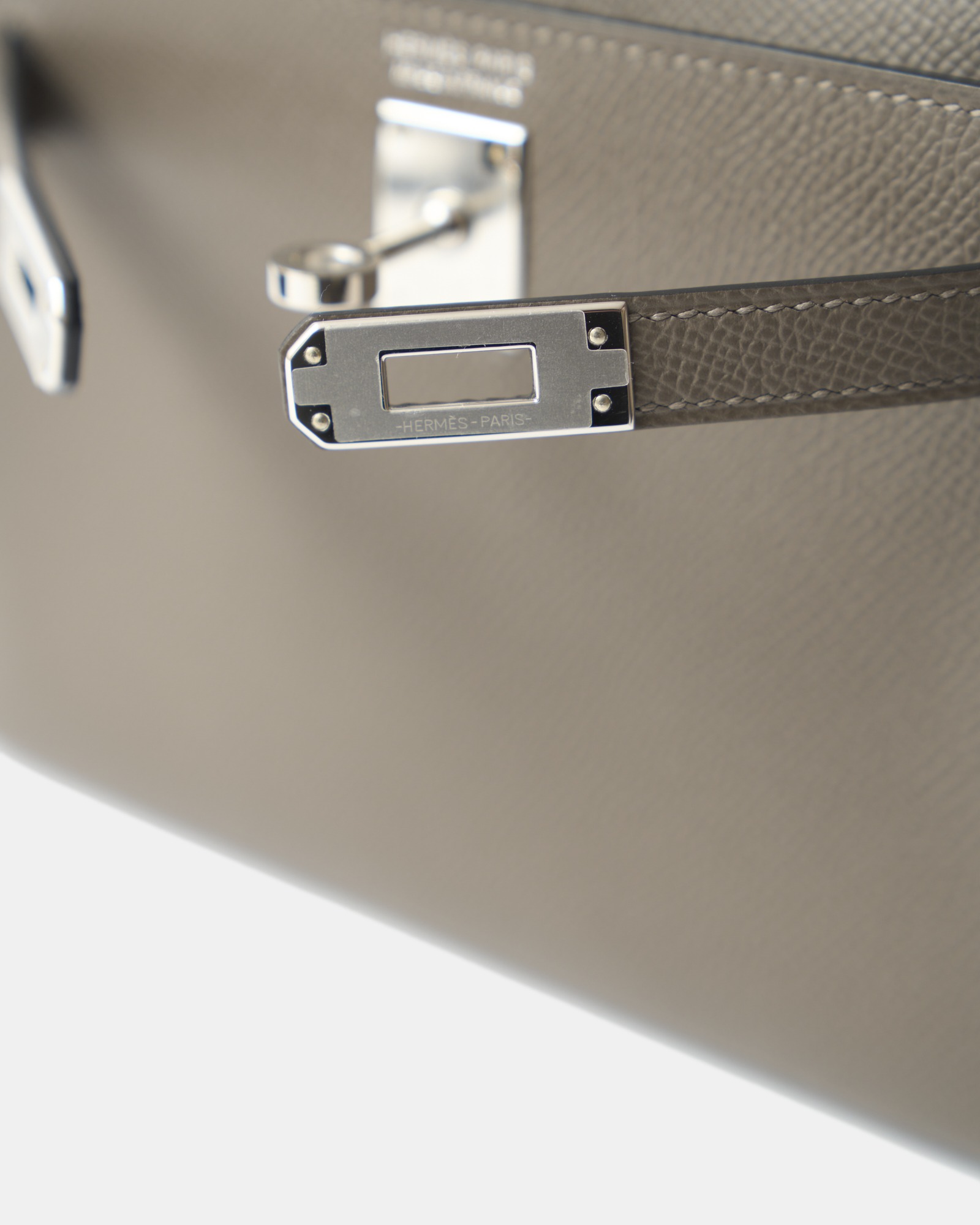 The Hermès Mini Kelly 20 is one of the maison’s most coveted silhouettes, celebrated for its refined proportions and timeless elegance. This brand new example is crafted in Etain Epsom leather, Hermès’ iconic taupe-grey shade known for its versatility and modern sophistication. The structured, embossed Epsom leather ensures excellent shape retention, while sleek palladium hardware (PHW) adds a contemporary, understated finish.