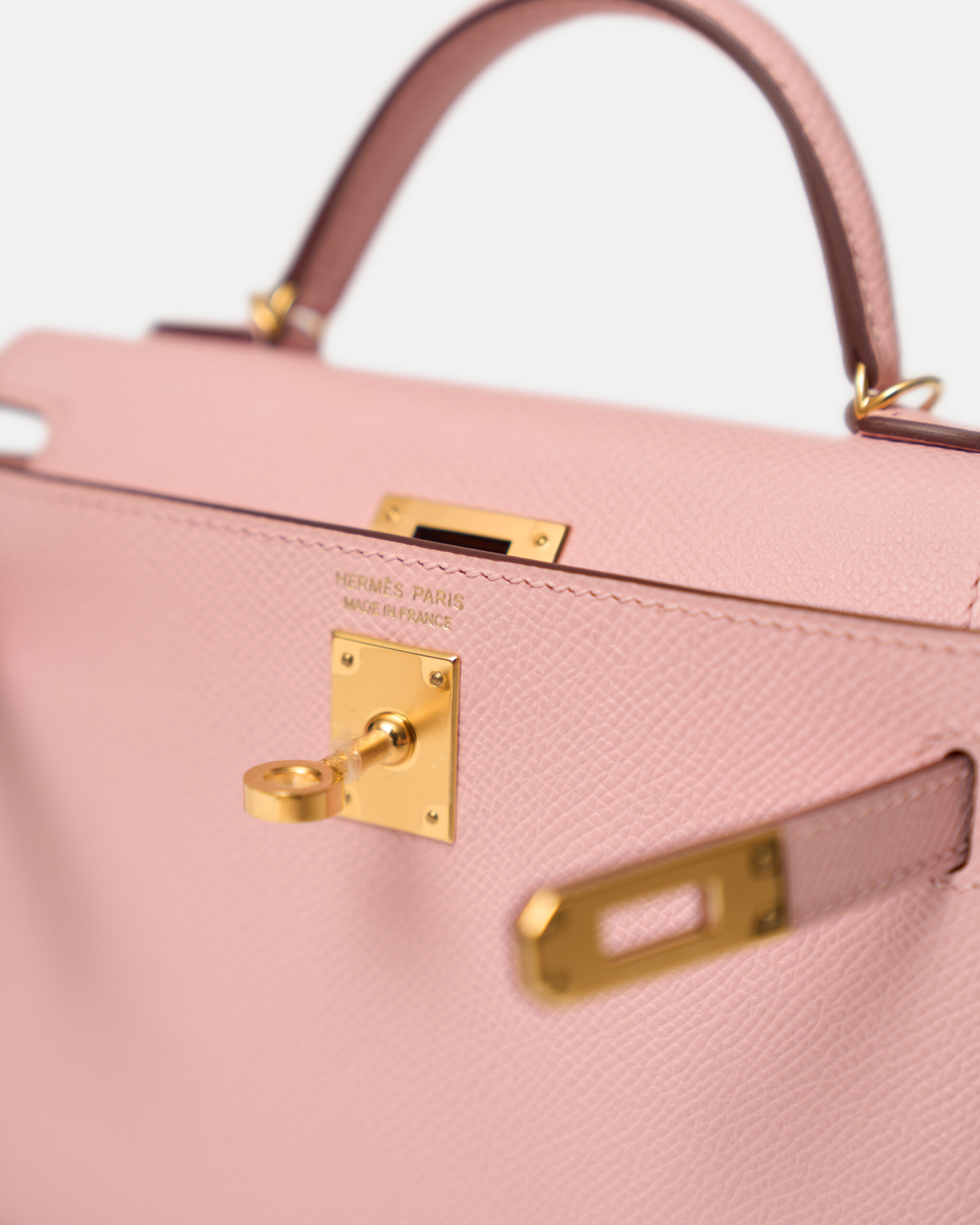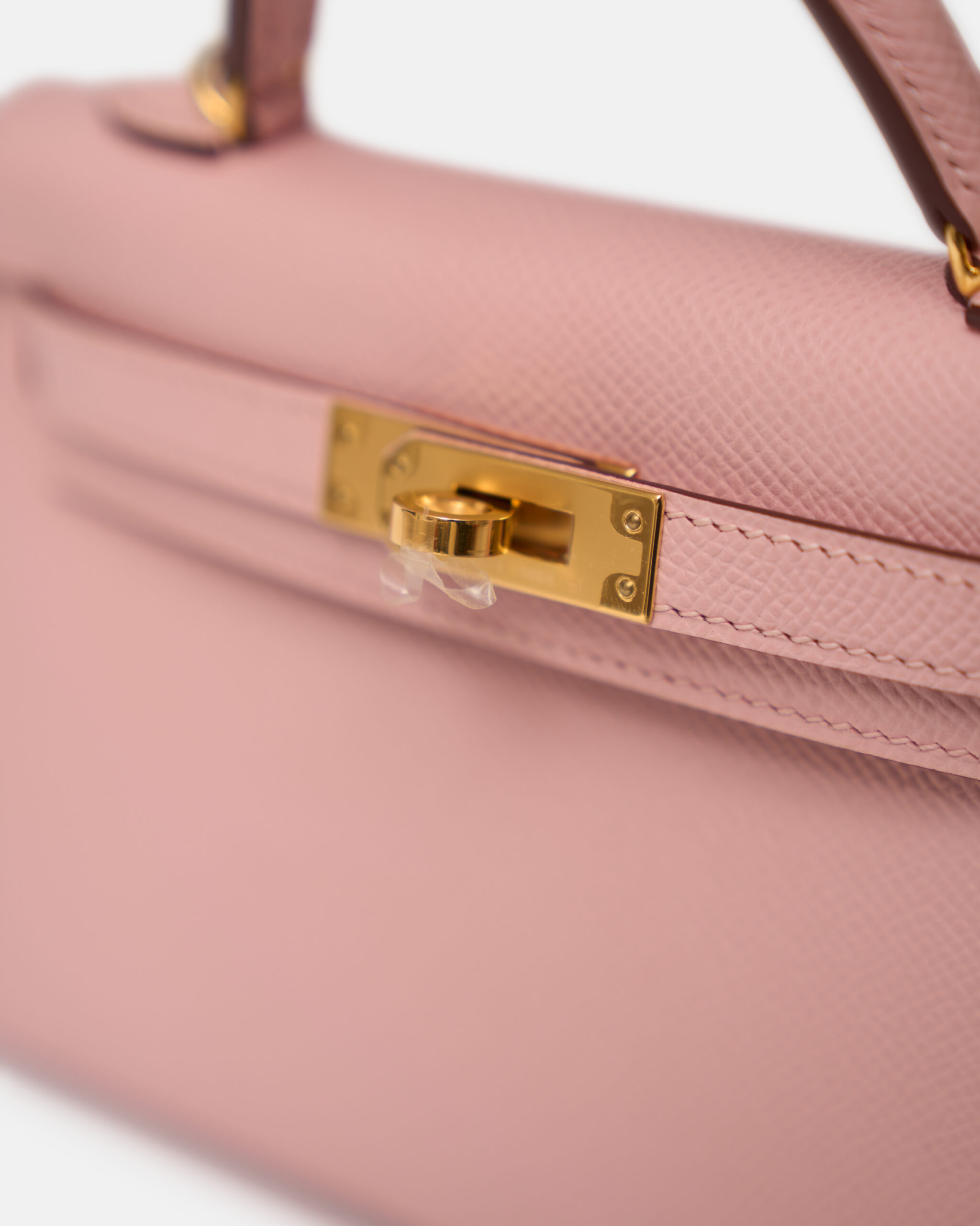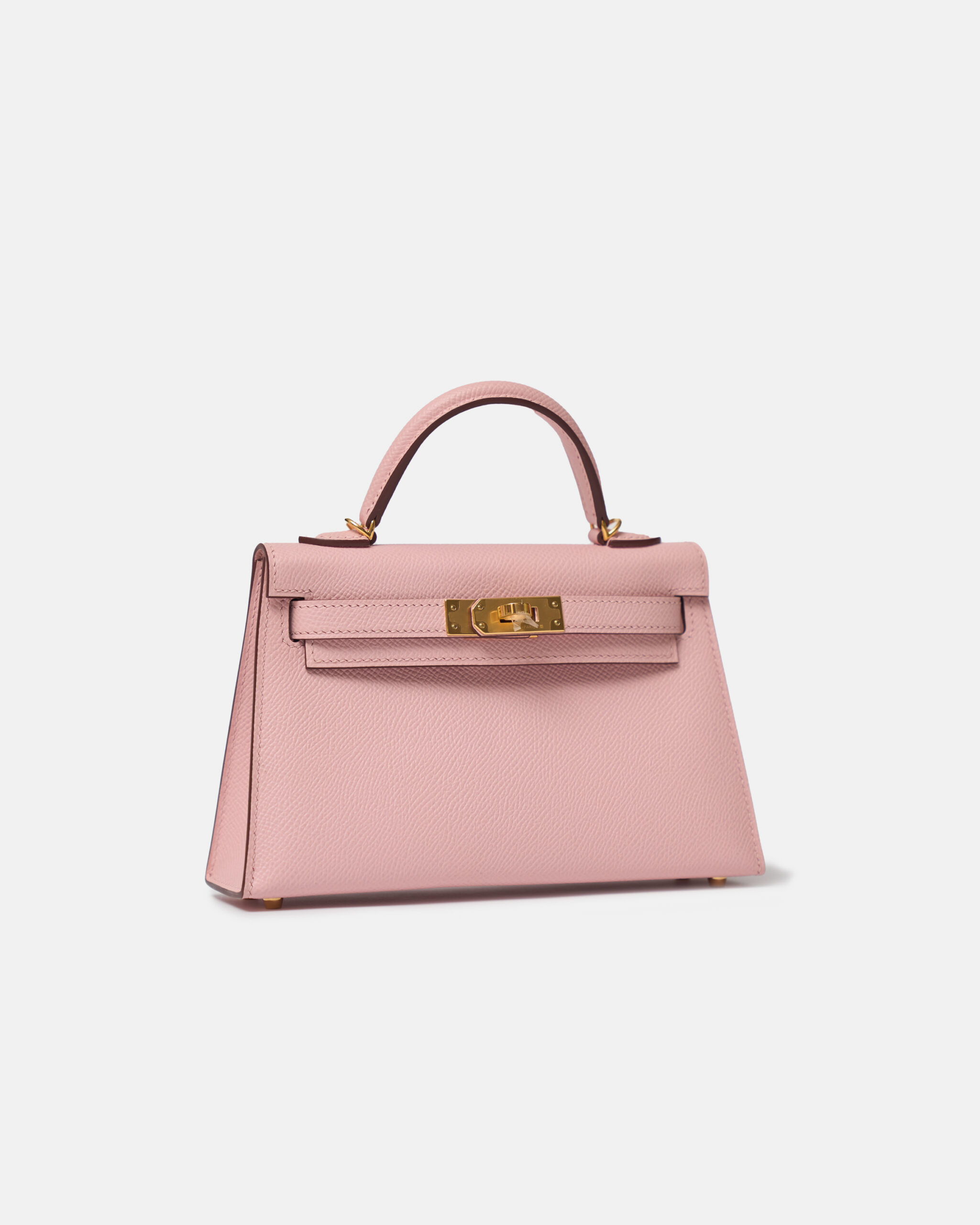 The Hermès Mini Kelly 20 is one of the house’s most coveted silhouettes, celebrated for its petite proportions and timeless elegance. This brand new example is crafted in delicate Rose Sakura Epsom leather, a soft pastel pink shade paired with Epsom’s refined embossed grain for a crisp, structured silhouette. The feminine hue is beautifully complemented by gold-plated hardware (GHW), creating a classic and highly desirable combination.